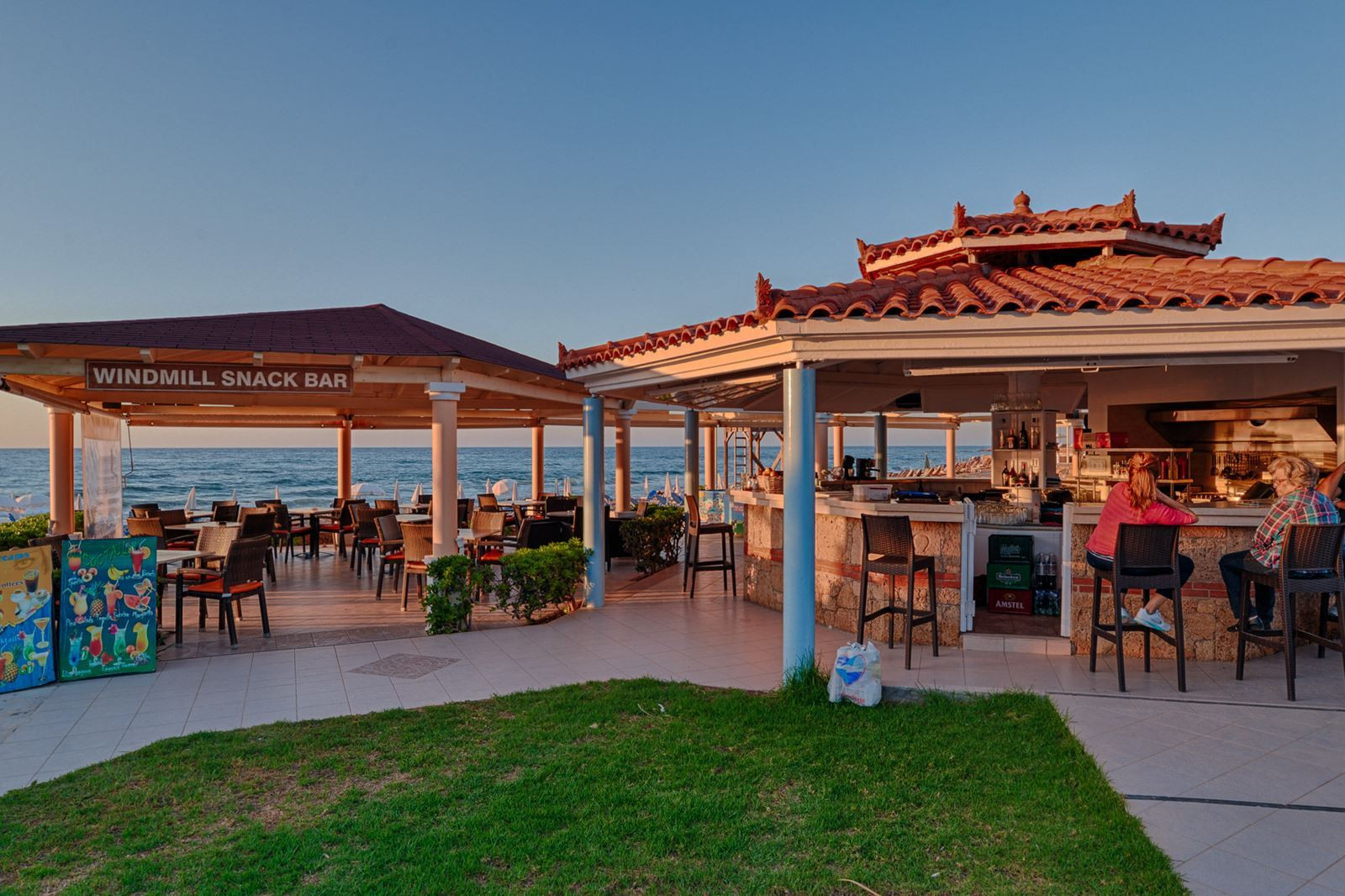 - Aan het openbare strand (Windmill) Zandstrand, Ligbedden tegen betaling, Parasol tegen betaling